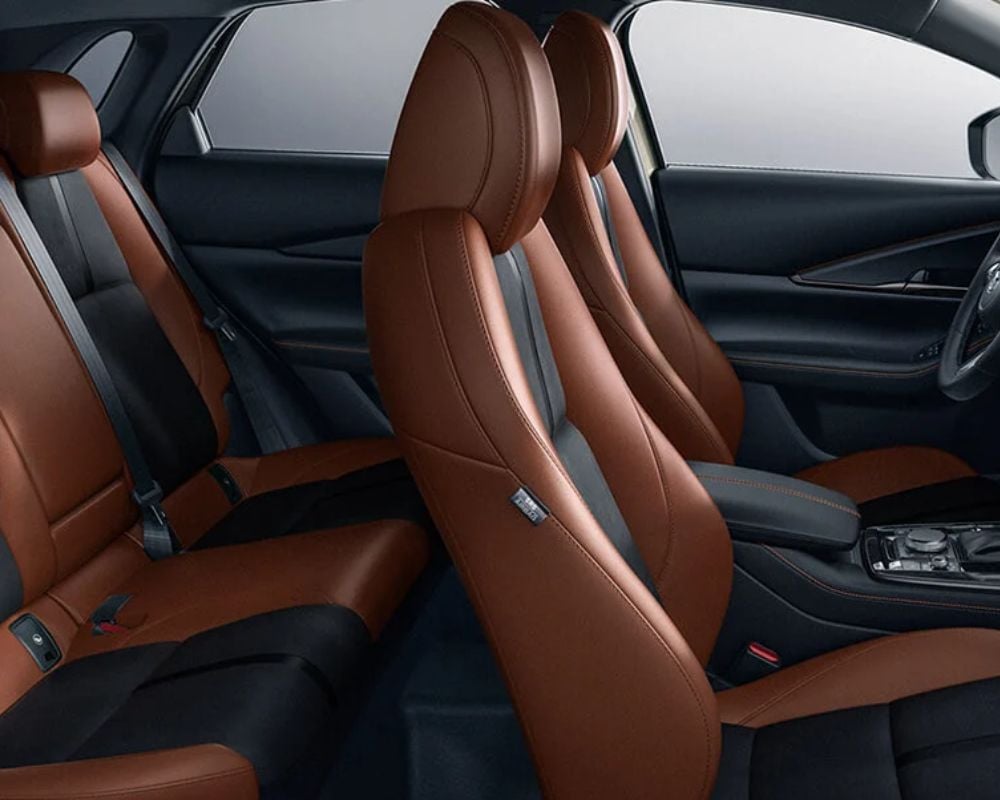 Step inside the Mazda CX-30, and you’ll be greeted with a well-crafted cabin that prioritizes comfort and quality. High-end materials, even in lower trims, create an upscale feel. The ergonomically designed seats provide ample support, making long drives more enthusiastic for both the driver and passengers.
