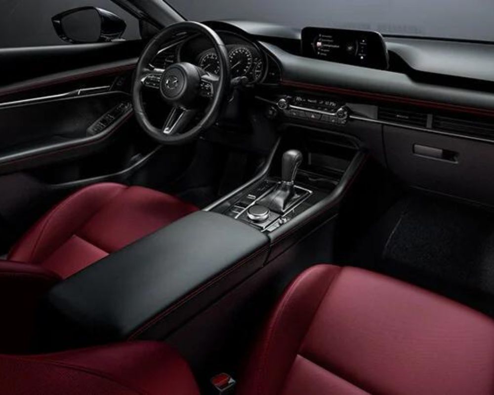 Experience the 2024 Mazda MAZDA3 interior, designed for comfort and functionality. Crafted with high-quality materials, it offers a premium feel with available leather-trimmed seats and soft-touch surfaces. Front seats provide ample space: 961 mm headroom, 1075 mm legroom, and 1414 mm shoulder room.